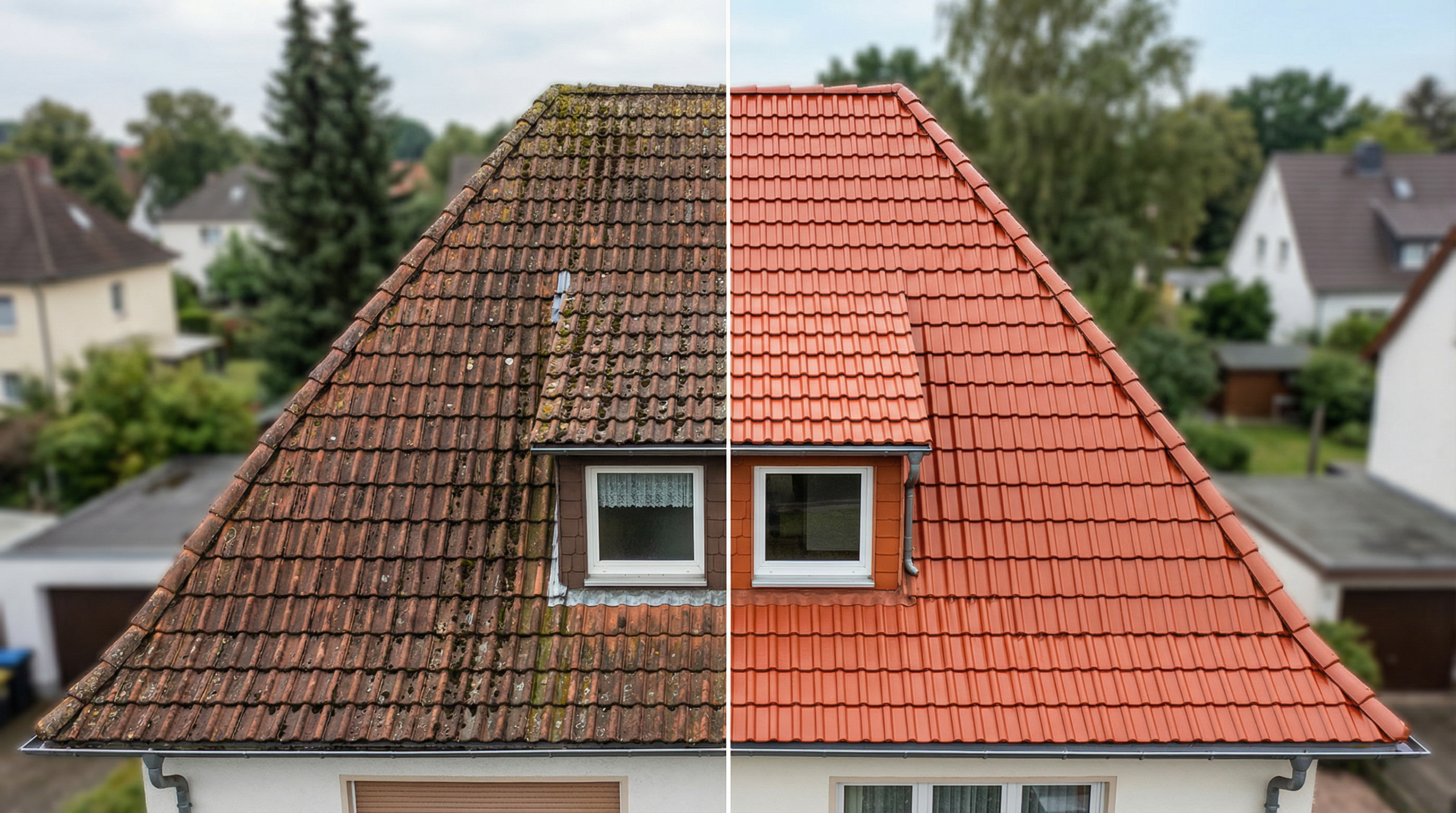Ihr Dach erstrahlt in neuem Glanz — strahlende Farben und saubere Oberfläche.